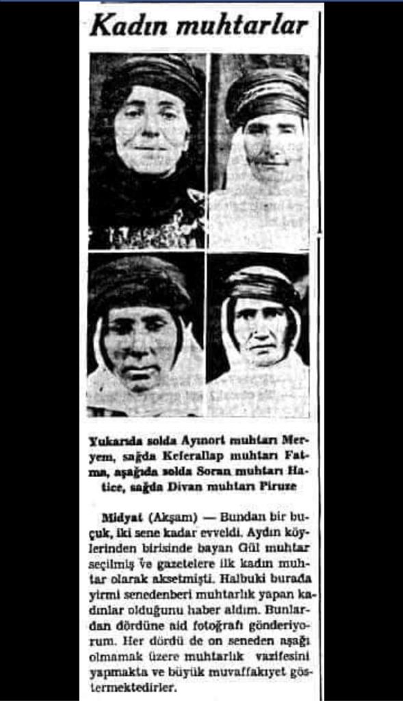 Türkiye’nin demokrasi kronolojisinde "İlk Kadın Muhtar" dendiğinde tüm oklar 26 Ekim 1933 tarihini ve Aydın’ın Çine ilçesinde seçilen Gül Esin’i gösterir. Ancak Midyat’ın tozlu arşivlerinden çıkan bir gazete kupürü, bu bilginin sadece "resmi" bir vitrin olduğunu kanıtlayarak ezberleri bozuyor. Aydın'da kadınlar ilk kez sandığa gitme hakkını yeni kazanırken; Mardin’in sarp coğrafyasında, köylerini 20 yıldır birer "hükümet" gibi yöneten dört kadın vardı: Meryem, Fatma, Hatice ve Piruze.