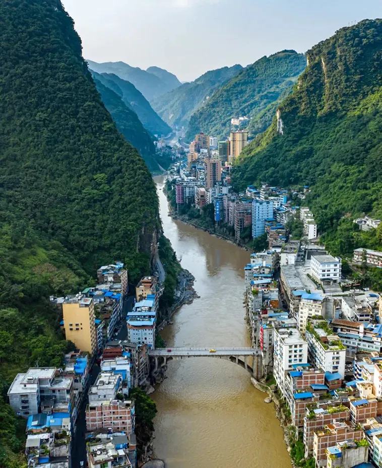 Son günlerde sosyal medyada viral olan bu ilginç şehir, insanların kente yukarıdan baktıklarında Yanjin metropolünün gerçekte var olduğuna inanmalarını zorlaştırıyor. Kentin içinden geçen Nanxi Nehri ve her iki yakasında yükselen büyük binalar, adeta bir akışkanın içinde akıp giden bir sandviç gibi görünüyor.