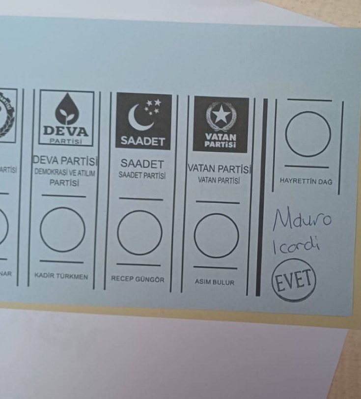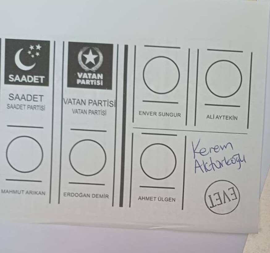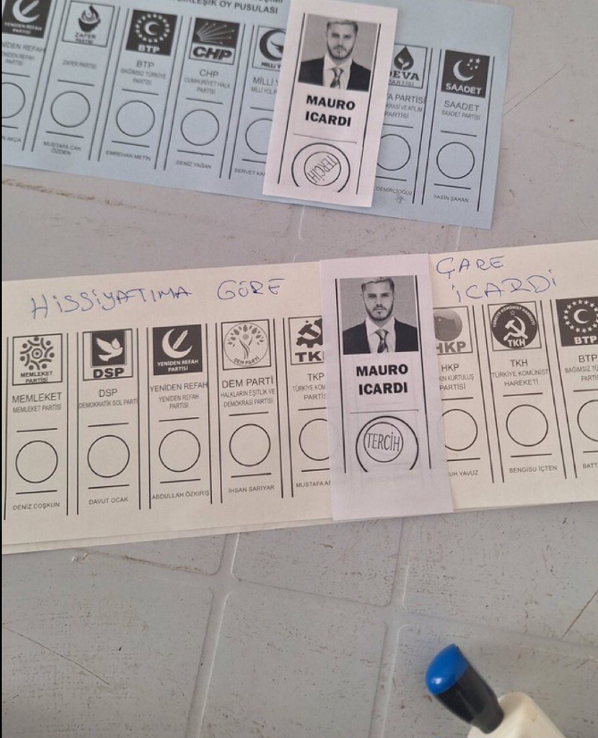 Bir Galatasaray taraftarı, oy pusulasına Galatasaray futbolcularından Kerem Aktürkoğlu, Kerem Demirbay ve taraftarın göz bebeği haline gelen Mauro Icardi'nin isimlerini kağıda yazıp onlara oyunu verdi.