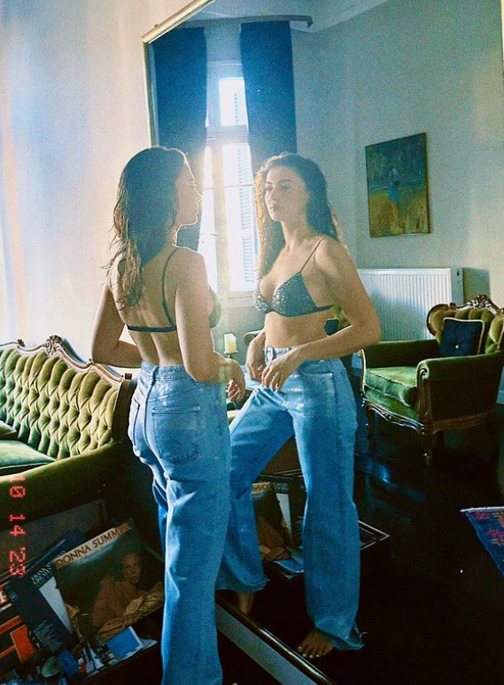 Sütyen ve pantolonla ayna karşısına geçerek poz veren Burcu Özberk'in paylaşımına beğeni ve yorum yağdı.