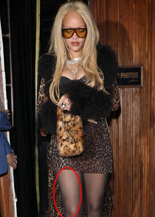 Rihanna'nın giydiği çorabın kaçmış olması ise dikkatli gözlerden kaçmadı.
